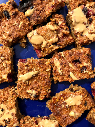 4) Leave to cool in the baking tray until completely cool then warm up the peanut butter in the microwave and drizzle over the top. Cut into squares and enjoy at any time of day or night.
